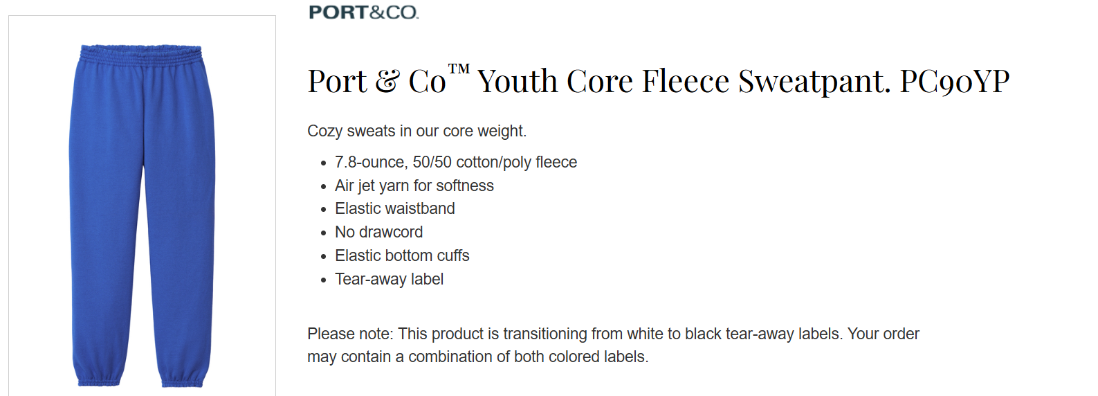 Quick view Choose Options WES-PC90YP-Port & Company® Youth Core Fleece Sweatpant MSRP: Was: Now: $23.25