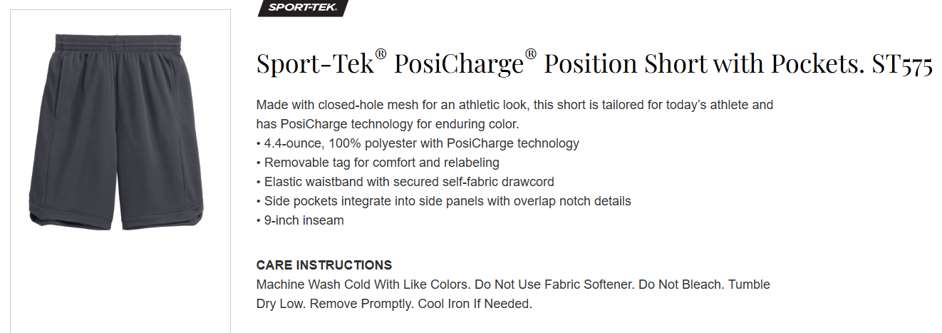 Quick view Choose Options EHS - ST575 - Sport-Tek® PosiCharge® Position Short with Pockets MSRP: Was: Now: $22.53