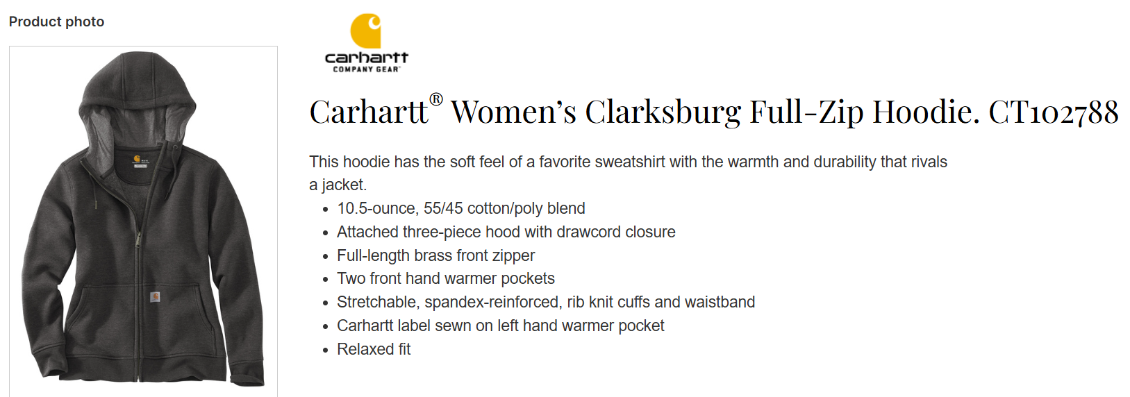 Quick view Choose Options BCC - CT102788 - Carhartt® Women’s Clarksburg Full-Zip Hoodie MSRP: Was: Now: $55.00