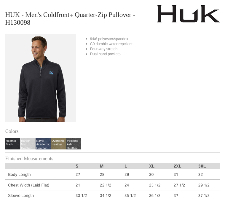 Quick view Choose Options BHBA - H130099 - HUK Men's Coldfront+ Vest -- with Twill/Embroidery on right chest MSRP: Was: Now: $65.00