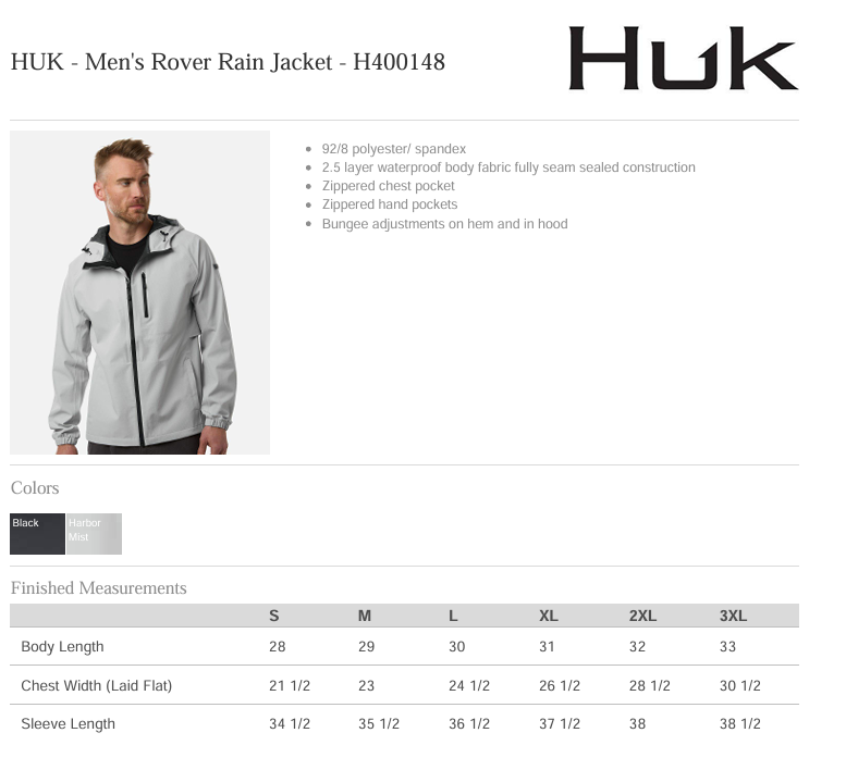 Quick view Choose Options BHBA - H400159 - HUK Men's Storm Rain Jacket -- with Twill/Embroidery on right chest MSRP: Was: Now: $95.00