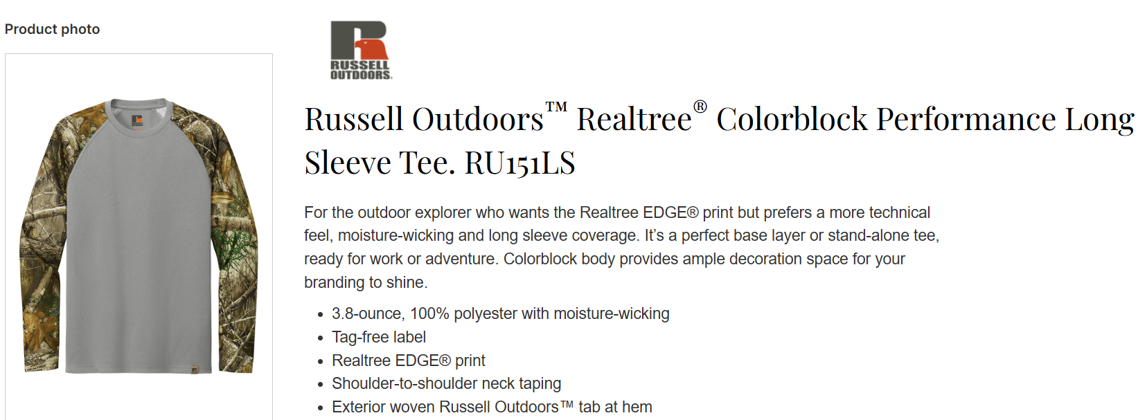 Quick view Choose Options BHBA - RU100LSP - Russell Outdoors™ Realtree® Long Sleeve Pocket Tee MSRP: Was: Now: $35.25