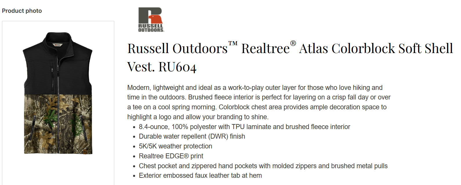 Quick view Choose Options BHBA - RU600 - Russell Outdoors™ Realtree® Atlas Soft Shell MSRP: Was: Now: $99.75