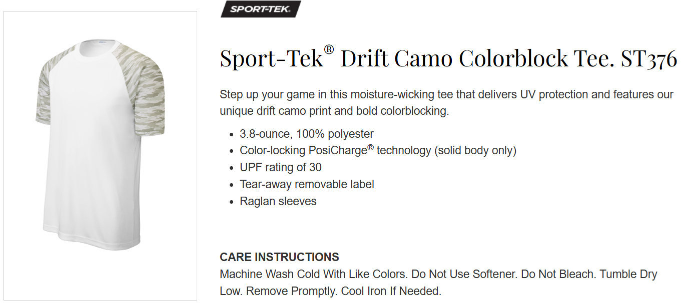 Quick view Choose Options BHBA - ST376LS - Sport-Tek® Drift Camo Colorblock Long Sleeve Tee MSRP: Was: Now: $19.25